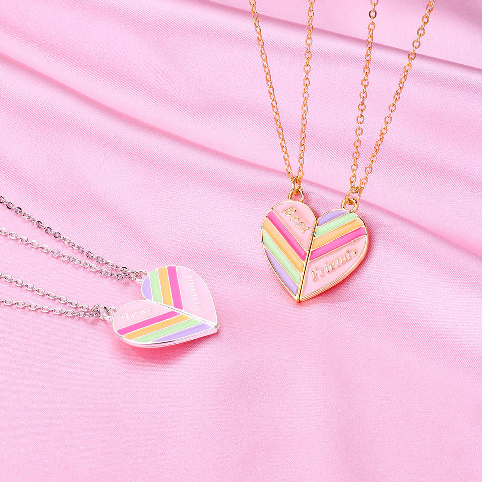 สร้อยคอน่ารักเพื่อนที่ดีที่สุดตลอดกาล Luckydays รุ้งหัวใจสร้อยคอจี้โซ่ BFF ของขวัญเครื่องประดับมิตรภาพสำหรับเด็ก