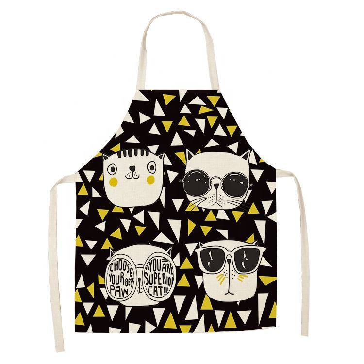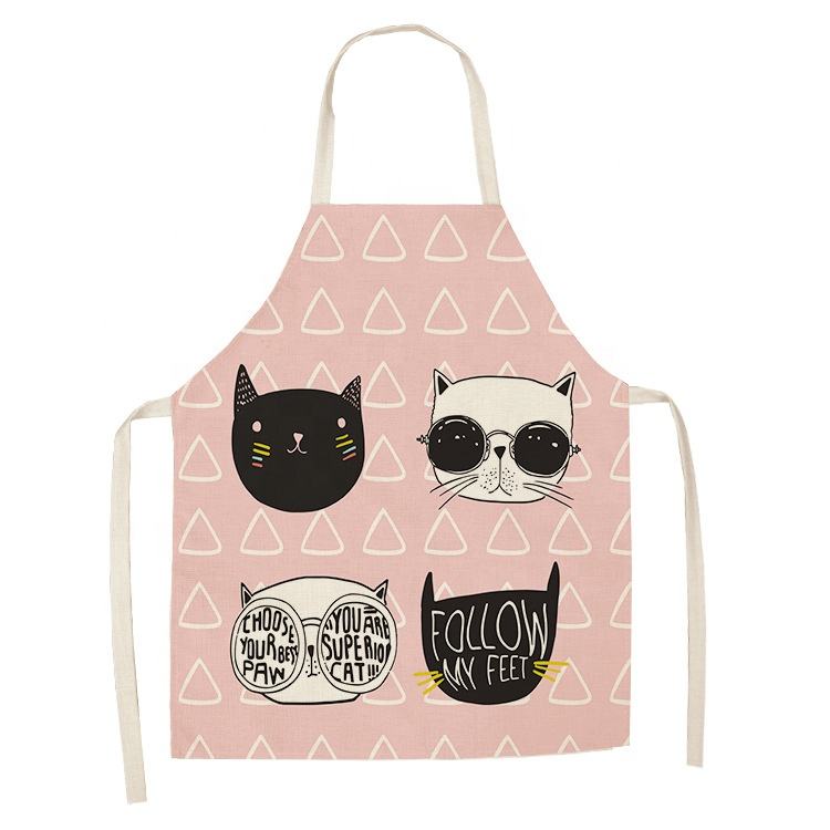 ผ้ากันเปื้อนคริสต์มาสลายการ์ตูนแมวน่ารักสำหรับผู้หญิง ผ้ากันเปื้อนผ้าฝ้ายลินิน ทนทาน ใช้ทำความสะอาดบ้าน ผ้ากันเปื้อนทำอาหารที่บ้าน