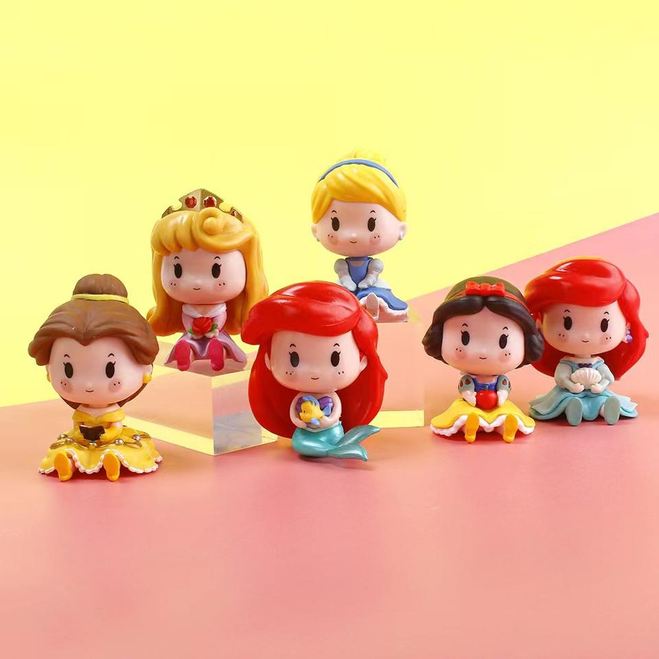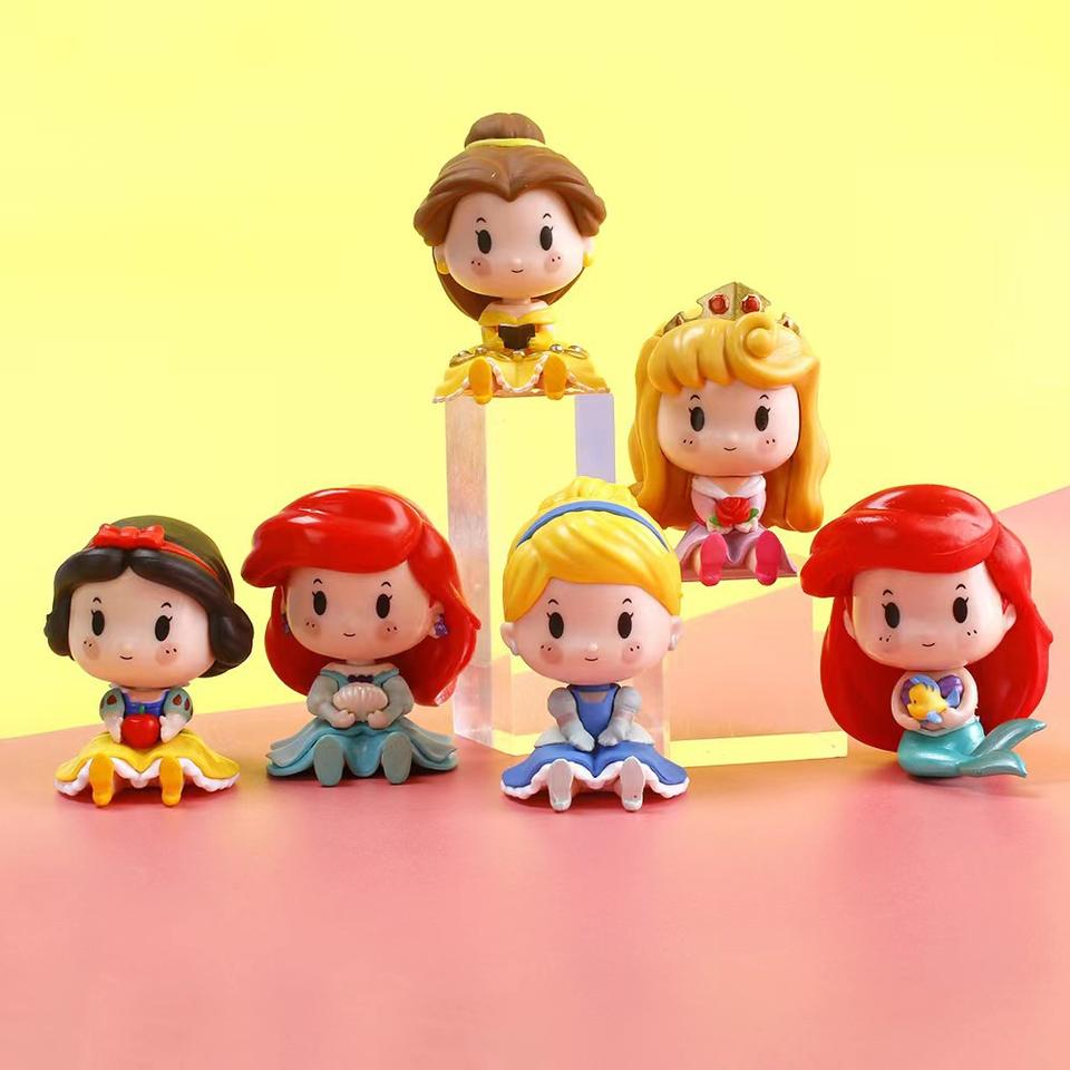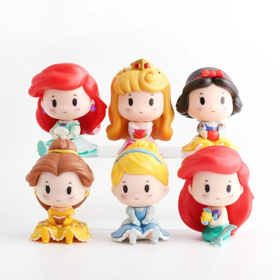 Lovely Cartoon Princess Snow White Ariel Princess Action Figure Set Wholesale 3D PVC Cake Desk Decoration Pendant Action Figures