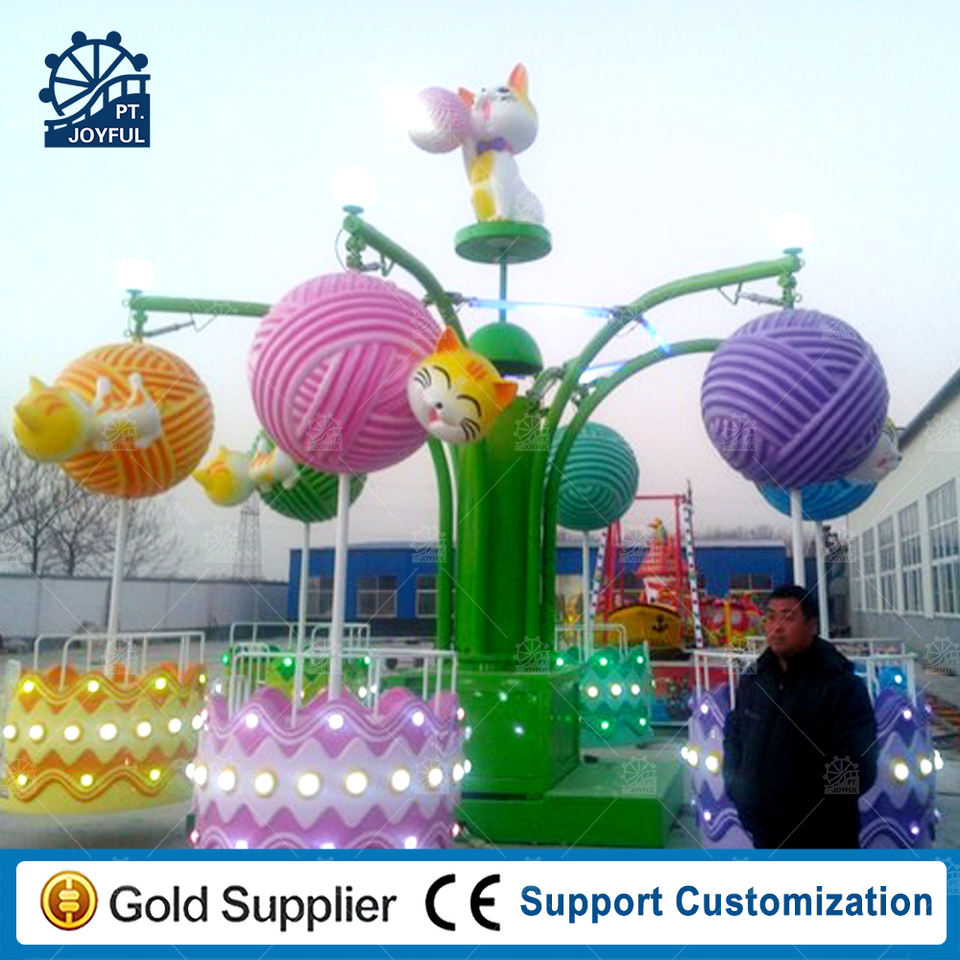 ม้าหมุนสำหรับเด็กในร่มลายแมวน่ารักสำหรับสวนสนุกกลางแจ้งลูกโป่งแซมบ้าแบบหมุนได้รับการรับรองจากไฟเบอร์กลาส CE