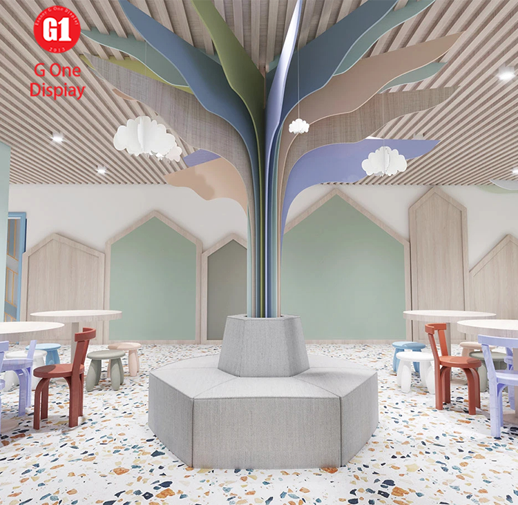 เฟอร์นิเจอร์ตกแต่งภายในสนามเด็กเล่นแสนน่ารัก ดีไซน์เคาน์เตอร์ร้านอาหารแบบกำหนดเอง ตกแต่งภายในสถานรับเลี้ยงเด็กสมัยใหม่