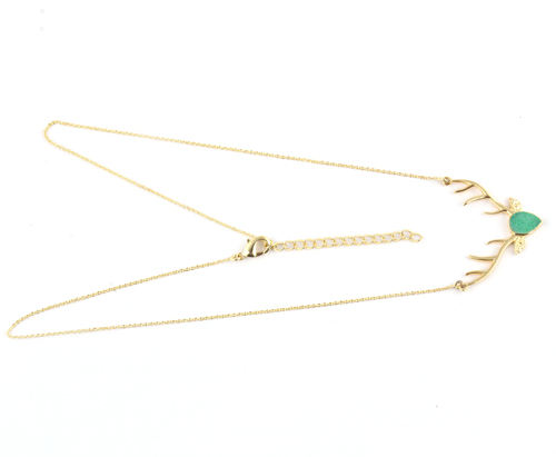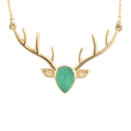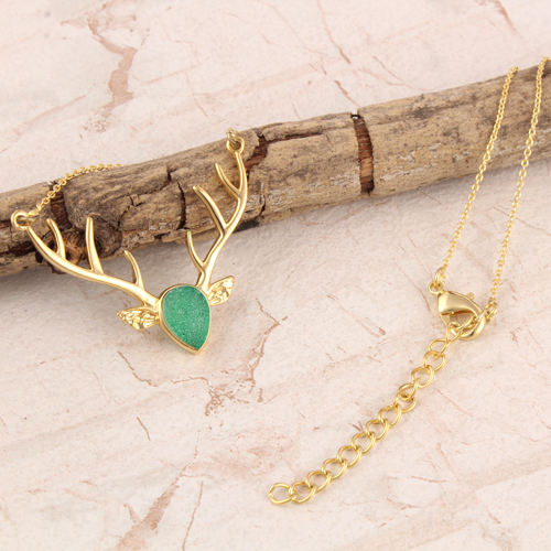 ของขวัญคริสต์มาสใหม่ออกแบบที่เรียบง่ายธรรมชาติสีเขียวDruzyจี้เขากวางสร้อยคอทองเหลืองชุบทองสร้อยคอยิปซีแฮนด์เมด