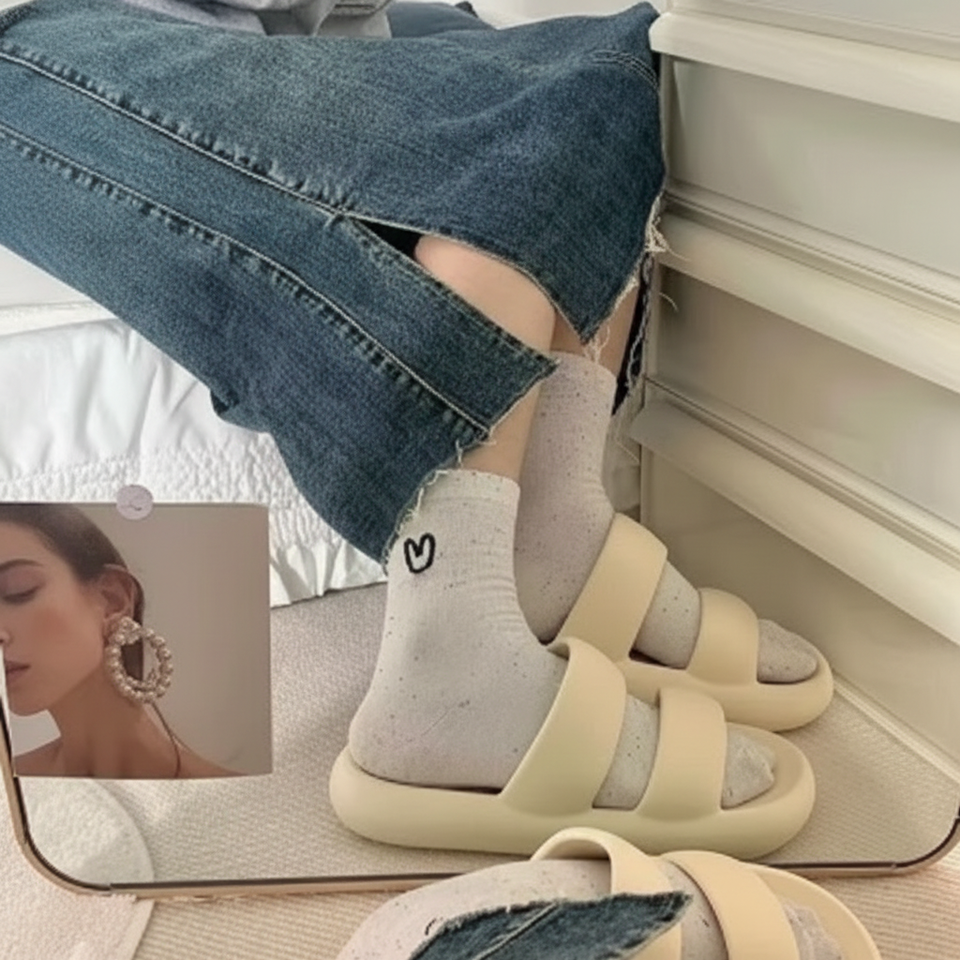 ถุงเท้ายาวปานกลางระบายความร้อนน่ารักสำหรับผู้หญิงถุงเท้าผู้หญิงสไตล์หัวใจดีไซน์กลางใหม่สำหรับฤดูใบไม้ผลิฤดูร้อน