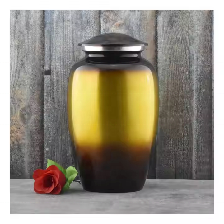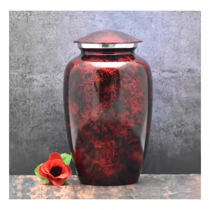 โกศบรรจุอัฐิสีเทาสวยงาม ทำจากโลหะพิมพ์ลายจุดสีดำ สำหรับบรรจุอัฐิมนุษย์ ใช้ในพิธีศพ ทนทาน คุณภาพดีเยี่ยม