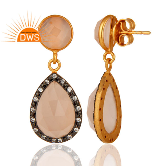 ต่างหูห้อยทรงหยดน้ำประดับพลอยโรสชาลเซโดนีทรงเหลี่ยมสวยงาม งานฝีมืออินเดีย ผลิตโดยผู้ผลิตเครื่องประดับพลอย คอลเลคชั่นคลาสสิก