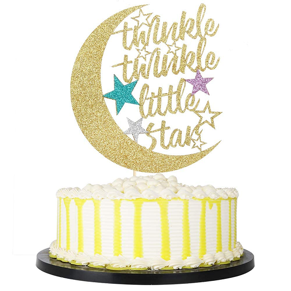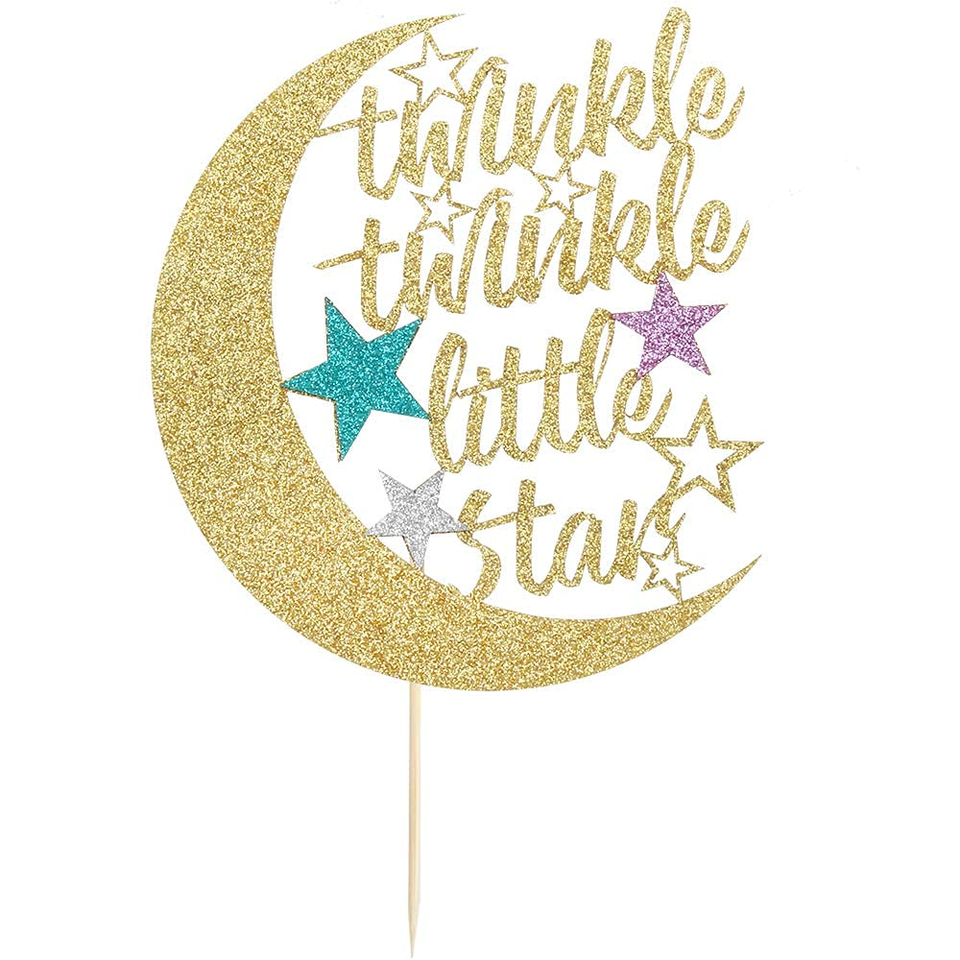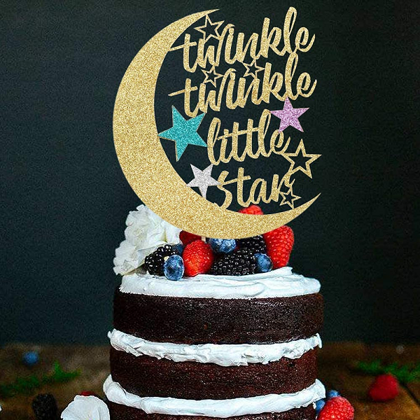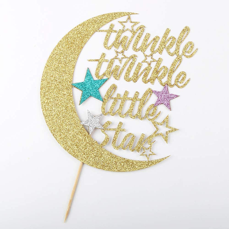 ท็อปเปอร์เค้กกลิตเตอร์รูปดาวน่ารัก รักษ์โลก ธีม Twinkle Twinkle รูปพระจันทร์ครึ่งเสี้ยว สำหรับงานเลี้ยงฉลองวันเกิดเด็กและงานเลี้ยงฉลองเบบี้ชาวเวอร์