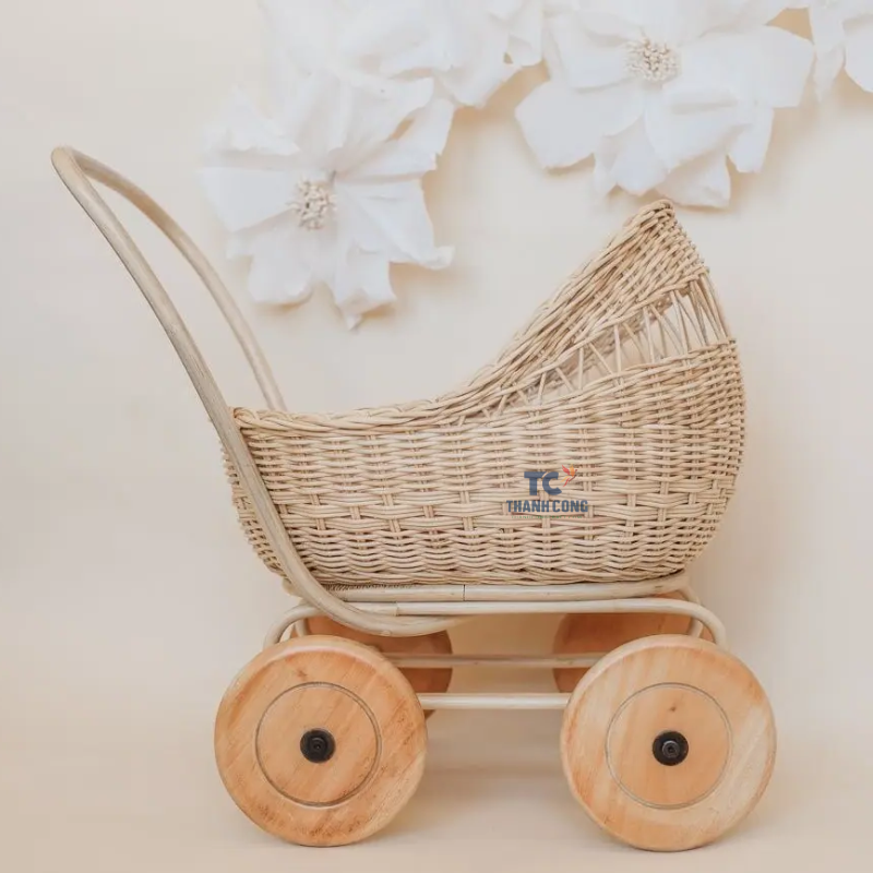 หัตถกรรมน่ารักตุ๊กตาธรรมชาติรถเข็นเด็กทําด้วยมือตุ๊กตาหวายรถเข็นเด็กของเล่นเท้าตุ๊กตาเด็กรถเข็นเด็กขายส่ง