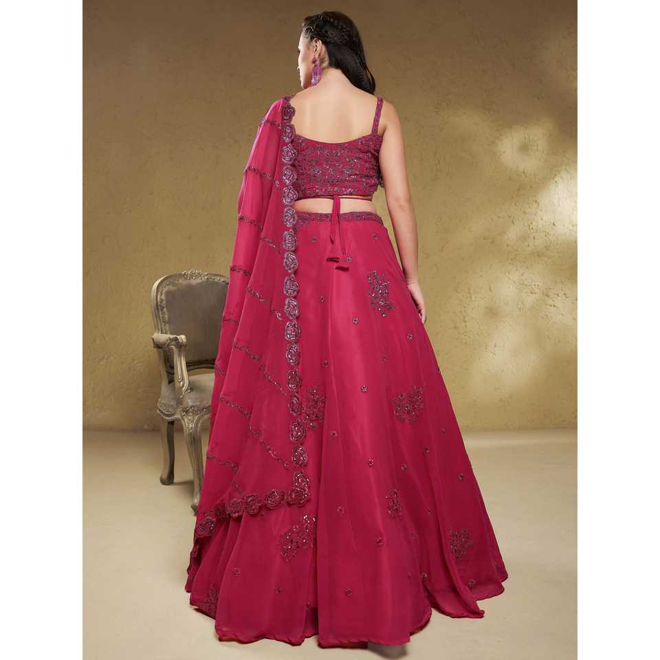 ชุดเลเฮนกาโชลีผ้าจอร์เจตต์ปักลายสีชมพูสวยงามสำหรับงานเลี้ยง แบบกึ่งสำเร็จรูปจากซีล ค্লอธิ้ง