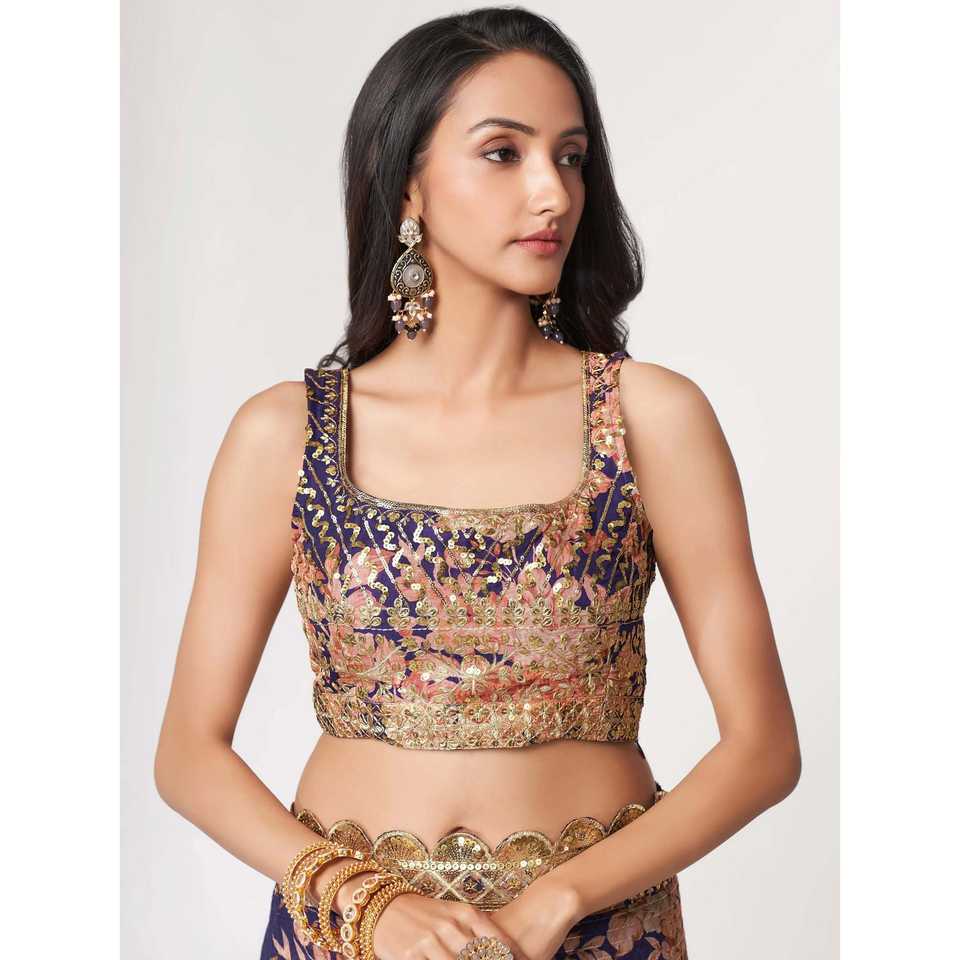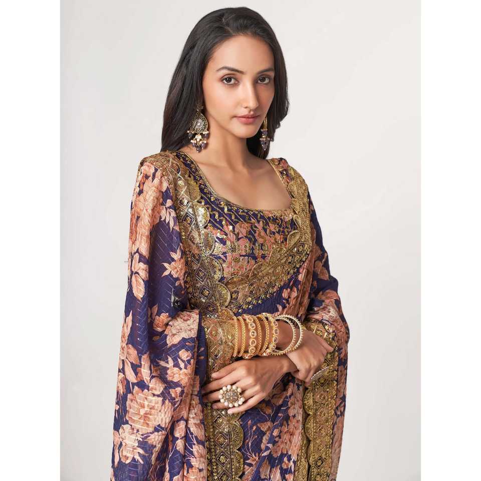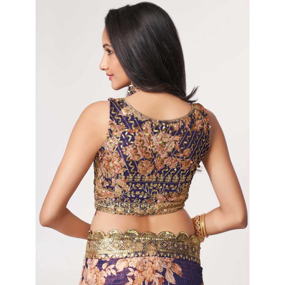 ชุดส่าหรีผ้าออร์แกนซ่าพิมพ์ลายดอกไม้สีม่วงสวยงามสำหรับผู้หญิง พร้อมเสื้อสำหรับงานปาร์ตี้