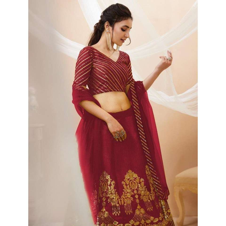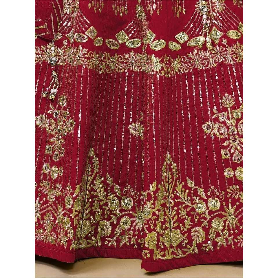 ชุดแต่งงานผ้าไหมปักเลื่อมสีแดงน่ารักชุด lehenga choli กับ dupatta