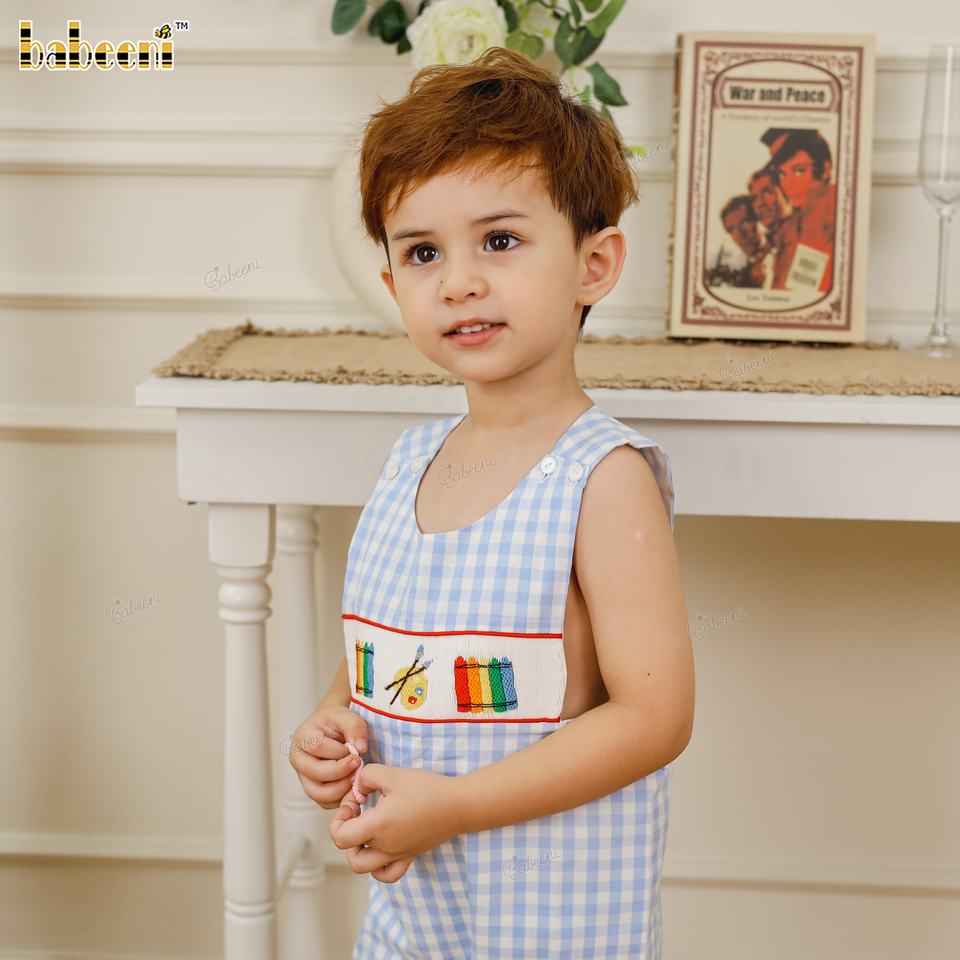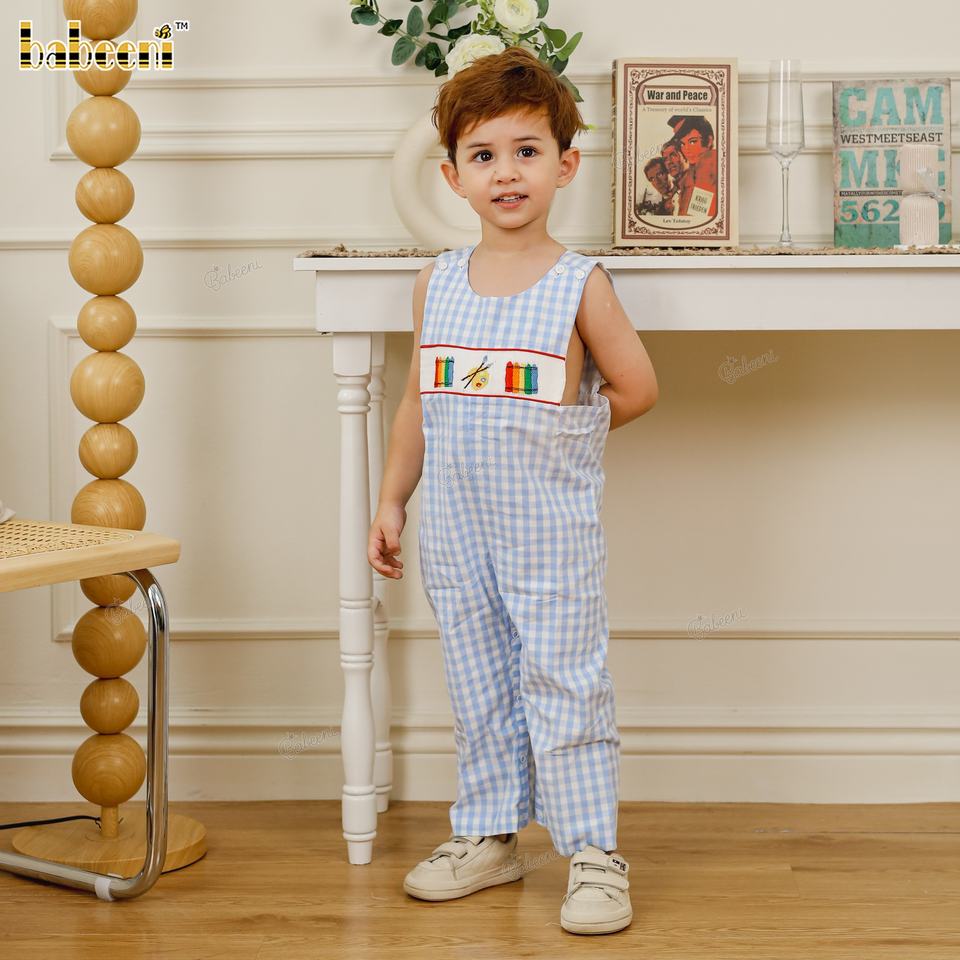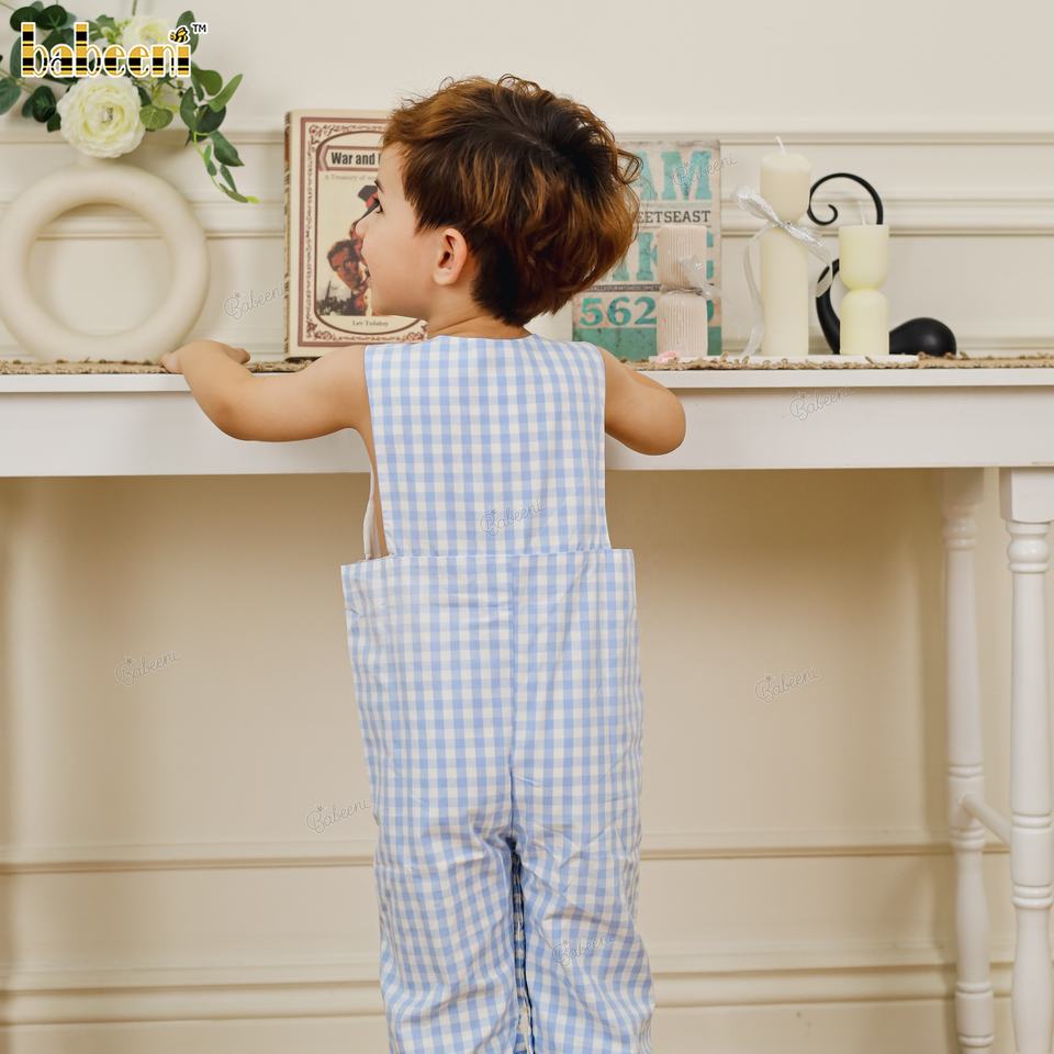 ชุดรอมเปอร์เด็กผู้ชายลายตารางสีฟ้า ผ้าฝ้าย 100% ติดกระดุมแป๊ก สไตล์น่ารัก สำหรับฤดูใบไม้ร่วง ได้รับการรับรองมาตรฐาน CPSIA/OEKO-TEX รับผลิตแบบ ODM/OEM ขายส่ง-รุ่น BB1128