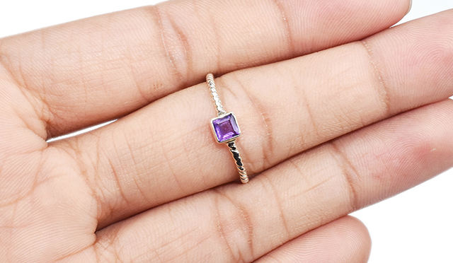 น่ารักรูปทรงสี่เหลี่ยม Bezel Amethyst 925แหวนเงินสเตอร์ลิงเครื่องประดับเงินผู้ค้าส่ง925เครื่องประดับเงินสเตอร์ลิง