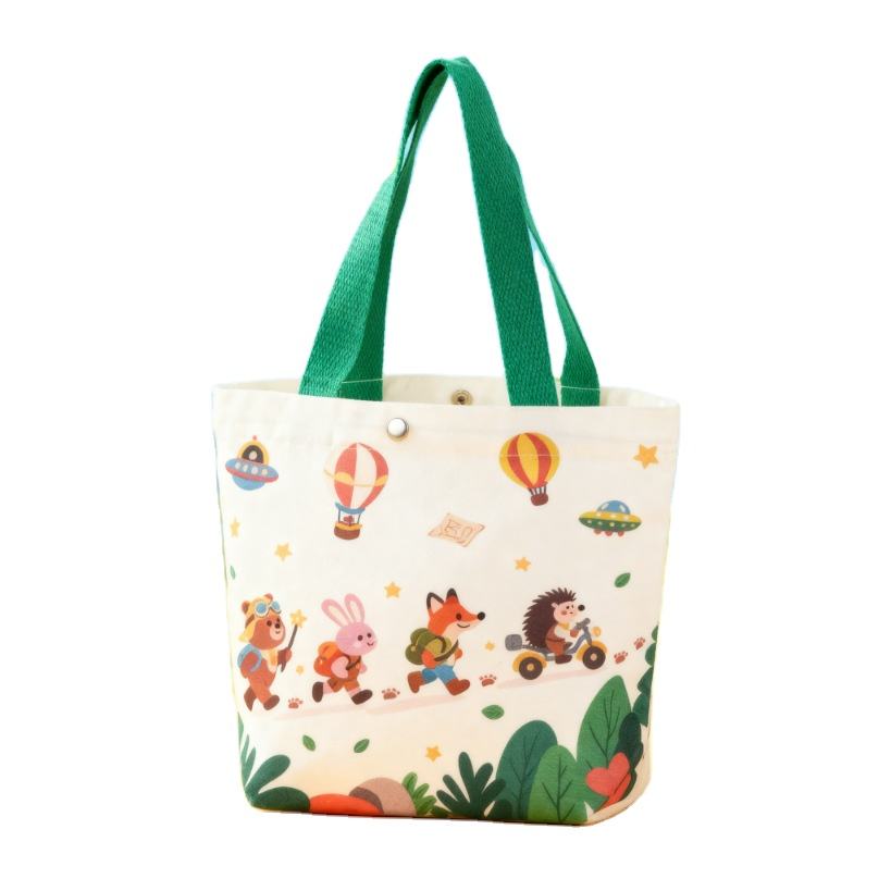 กระเป๋าผ้าแคนวาสพิมพ์โลโก้นักเรียนน่ารัก พร้อมฝาปิดแบบกำหนดเอง กระเป๋าถือขนาดเล็ก