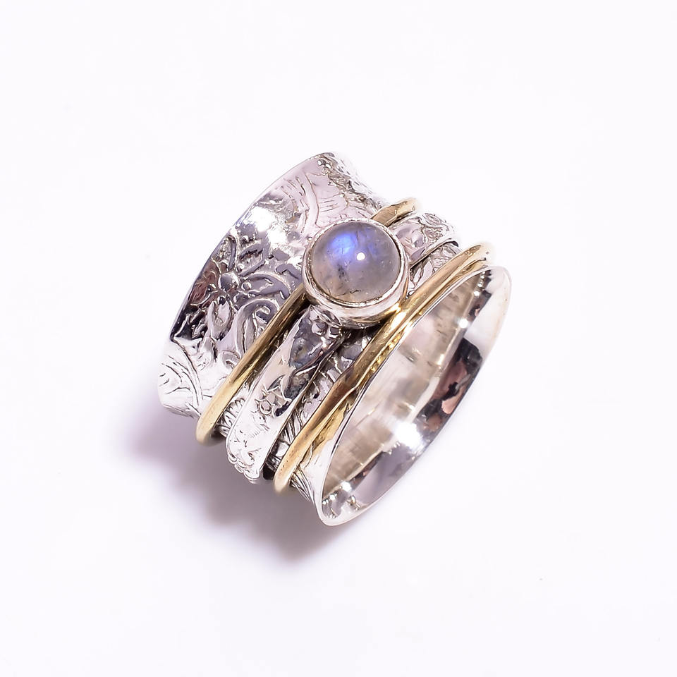 แหวนพื้นผิวที่น่ารัก925แหวนเงินลาบราดอไรต์เงินพร้อมแหวนทองแดงและทองเหลืองผู้ส่งออกเครื่องประดับเงินที่กำหนดเอง