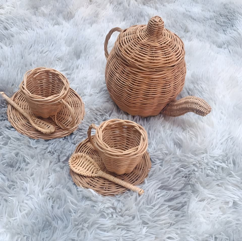 Rattan teapot set