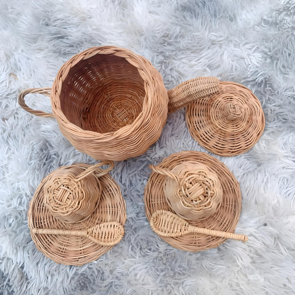ชุดถ้วยและกล่องใส่น้ำชาหวายสำหรับเด็กผู้หญิงอุปกรณ์เสริมของเล่นน่ารักสำหรับเด็ก