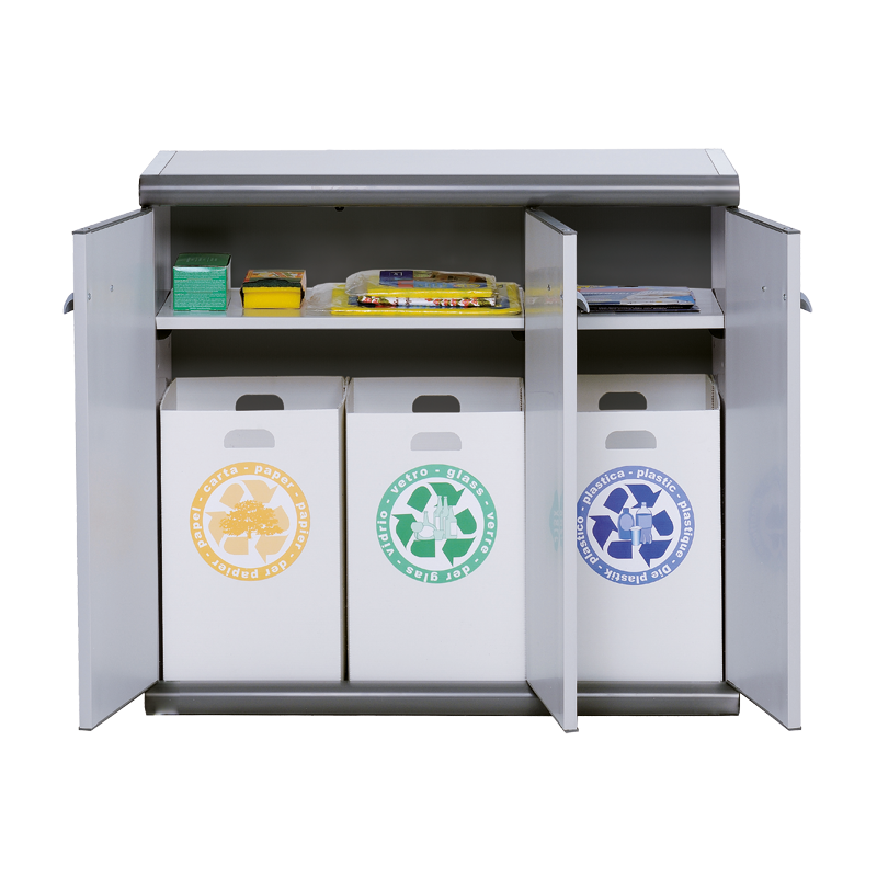 ตู้ต่ำ 'scik' ซม. 93.6x39x86H 3ประตูสำหรับเก็บขยะแยกต่างหากทำจากพลาสติกรีไซเคิล
