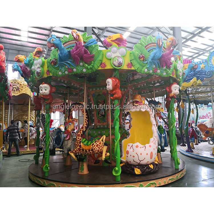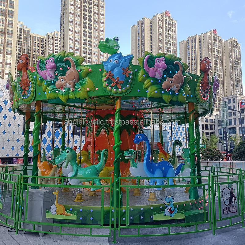 ม้าหมุนไดโนเสาร์ดีไซน์หรูหรา ราคาประหยัด 16 ที่นั่ง โครงสร้างโลหะ สำหรับเล่นในร่มและกลางแจ้ง เหมาะสำหรับสวนสนุก
