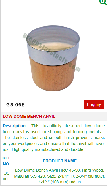 Product name:Low Dome Bench Anvil Stainless Steel GS-06E