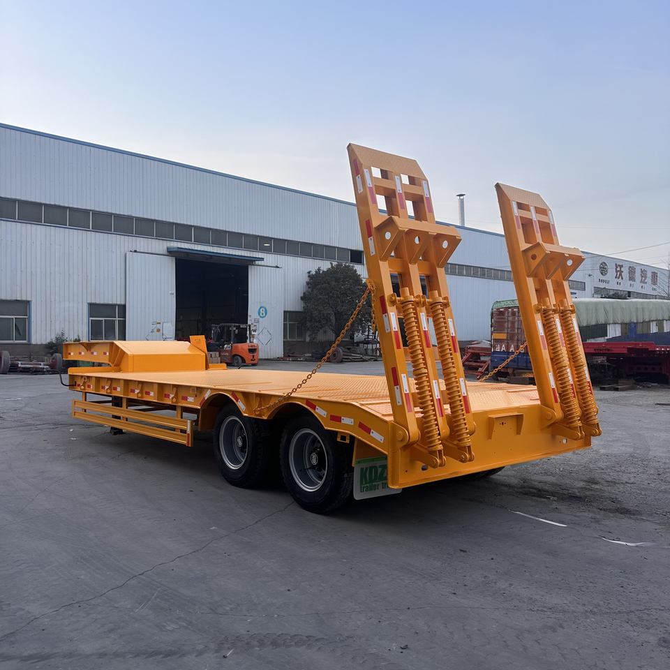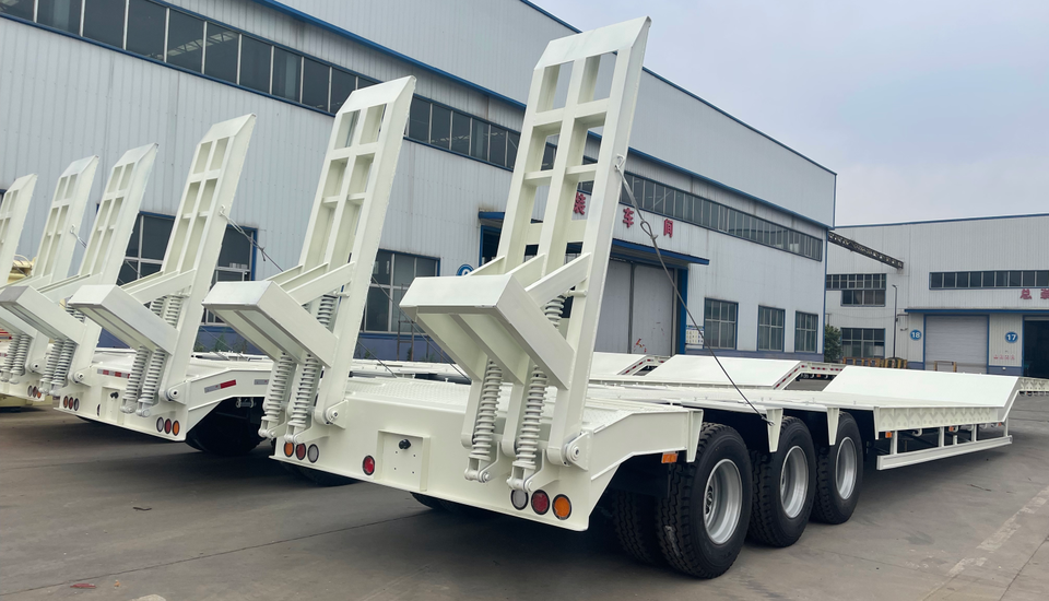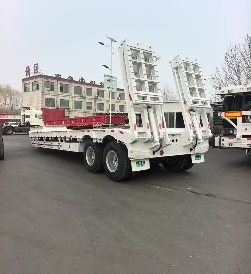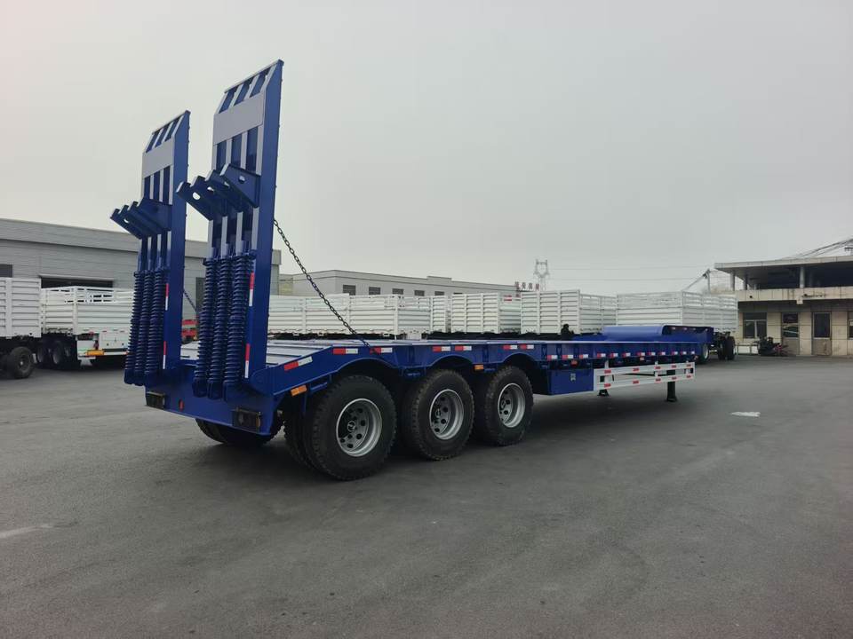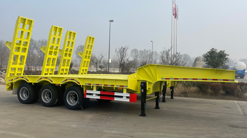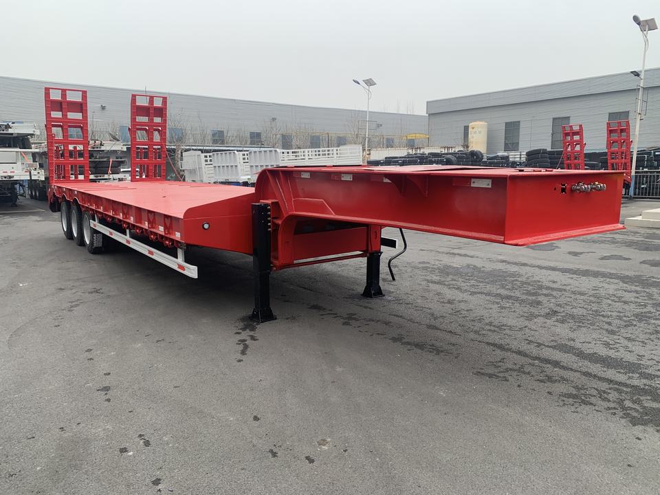รถกึ่งพ่วงพื้นเรียบต่ำ รับน้ำหนักได้ 60 ตัน จัดจำหน่ายโดยโรงงานจีนสำหรับเครื่องจักรและอุปกรณ์ขนส่ง
