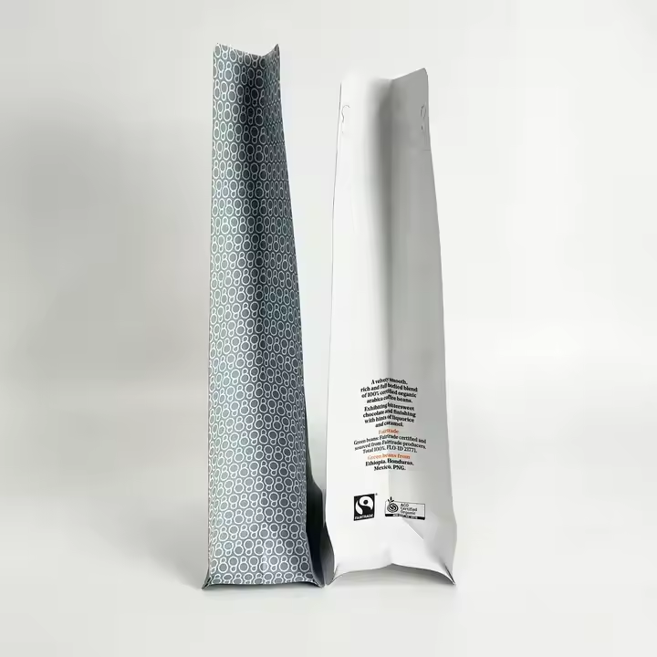 ถุงใส่กาแฟอลูมิเนียมฟอยล์แบบผงบรรจุอาหาร MOQ ต่ำ500ชิ้นมีโลโก้ออกแบบได้ตามต้องการ