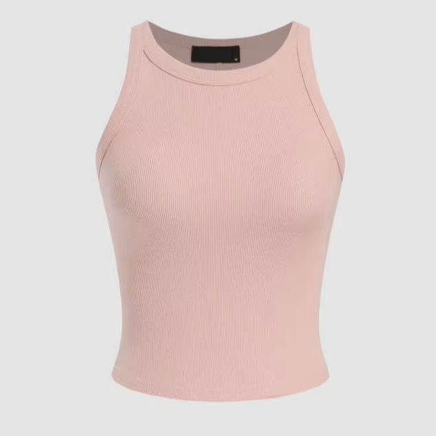 เสื้อกล้ามสายเดี่ยวแขนกุดสำหรับผู้หญิงเสื้อครอปสีพื้นออกแบบได้ตามต้องการฤดูร้อน