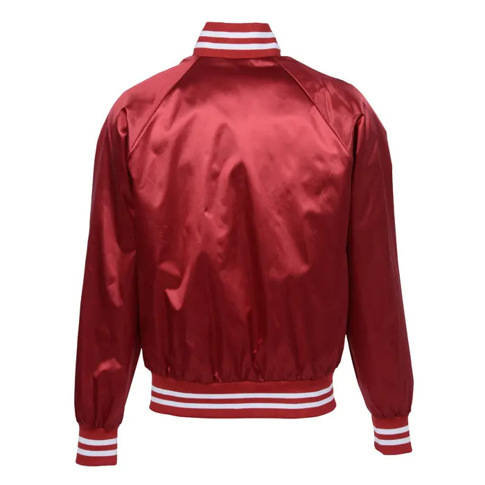 แจ็กเก็ตบอมเบอร์สำหรับผู้ชายแจ็คเก็ตเบสบอลทำจากผ้าซาตินติดกระดุมแขนยาวระบายอากาศได้ดี