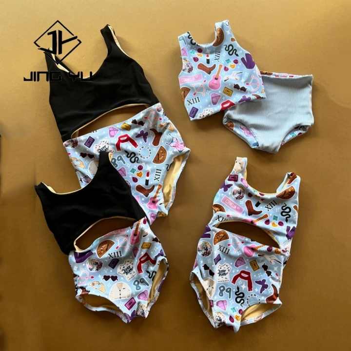 ชุดว่ายน้ำบิกินี่เด็ก พิมพ์ลายหลากหลายแบบ ผลิตตามสั่ง MOQ ต่ำ ไนลอน 1.85% สแปนเด็กซ์ 15%