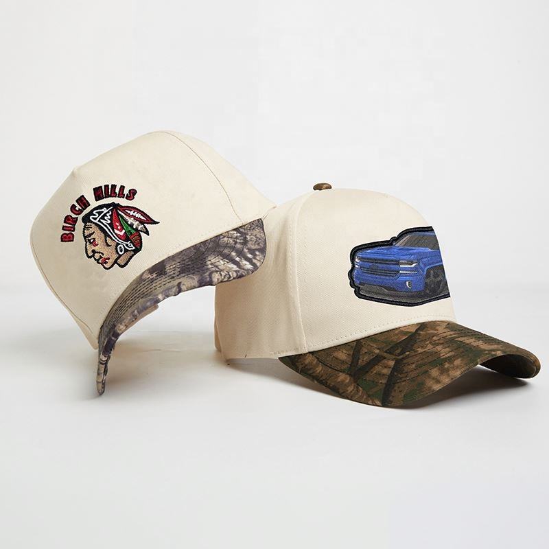 หมวกแก็ป5แผงผ้าฝ้ายแบบสั่งทำหมวกเบสบอลหมวกแก็ปหมวกแก็ปหมวกแก็ปปีกแบนลายใบไม้ป่าปัก