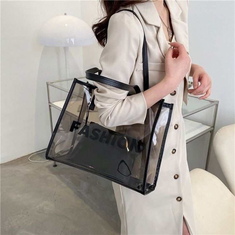 กระเป๋าช้อปปิ้งทำจากพีวีซีใสกันน้ำมีหูหิ้วสำหรับเดินทางชายหาดความจุขนาดใหญ่โลโก้ออกแบบได้ตามต้องการ