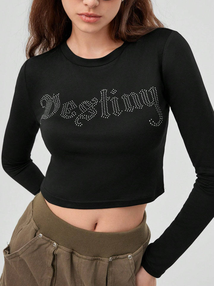 เสื้อครอปแขนยาวพลอยเทียมสำหรับเด็กผู้หญิงเสื้อครอปแขนยาวโลโก้ตามสั่ง