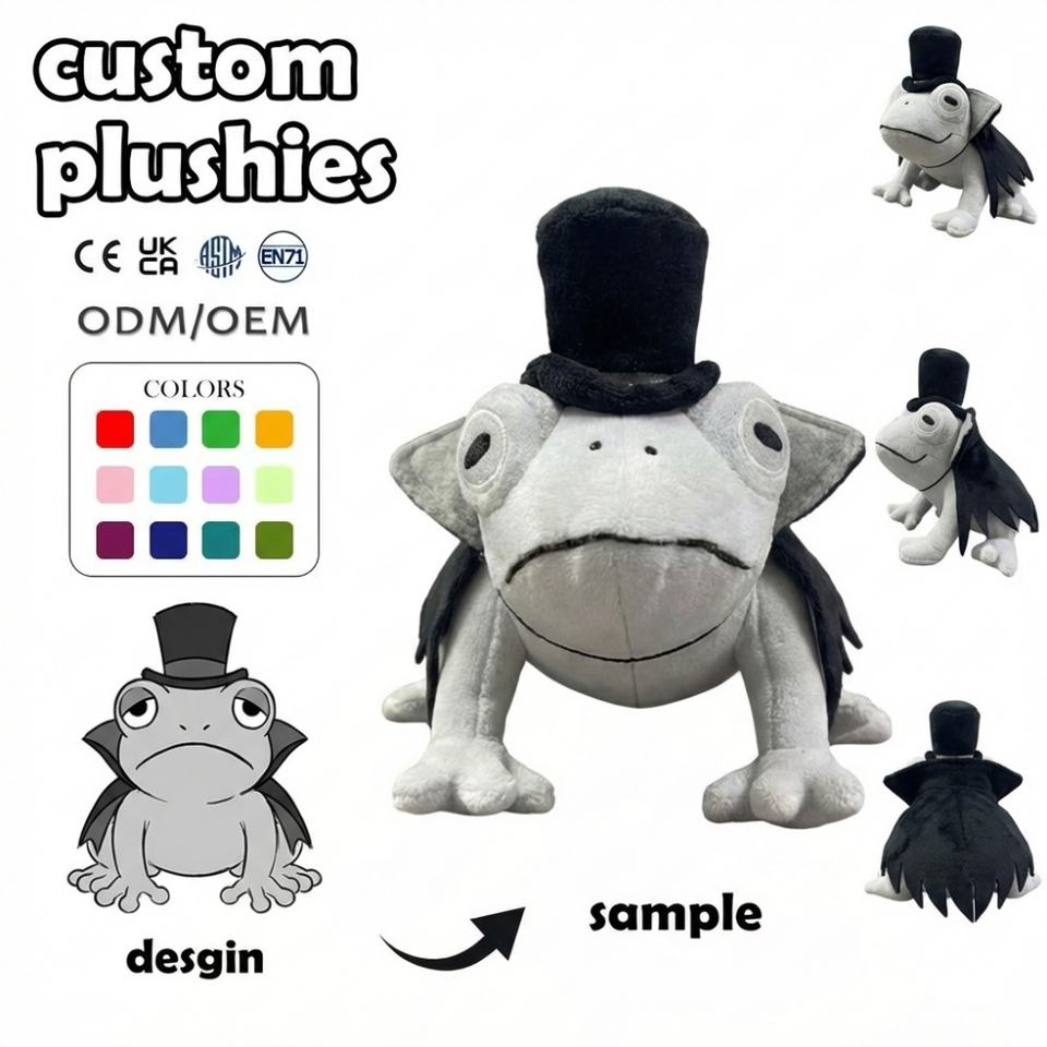 ตุ๊กตากบสีเขียวยิ้มแลบลิ้น ตัวนิ่มทำจากใยฝ้าย PP สั่งทำได้ MOQ ต่ำ เหมาะสำหรับเป็นของขวัญวันเกิด