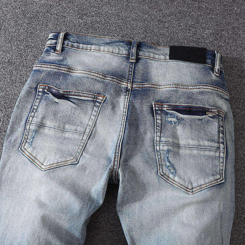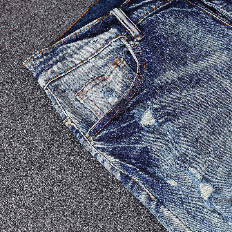 กางเกงยีนส์เดนิมทรงสลิมฟิตสำหรับผู้ชาย ผ้าฝ้ายผสมสแปนเด็กซ์ แห้งเร็ว น้ำหนักเบา ลุคเท่แบบวินเทจ รับผลิตตามสั่ง MOQ ต่ำ