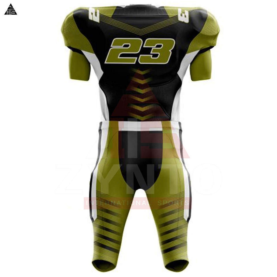 ชุดยูนิฟอร์มอเมริกันฟุตบอลแบบสั่งทำพิเศษ พิมพ์ลายโลโก้ด้วยเทคนิค Sublimation จำนวนสั่งขั้นต่ำน้อย ขายส่งชุดกีฬาอเมริกันฟุตบอลแบบสั่งทำพิเศษ