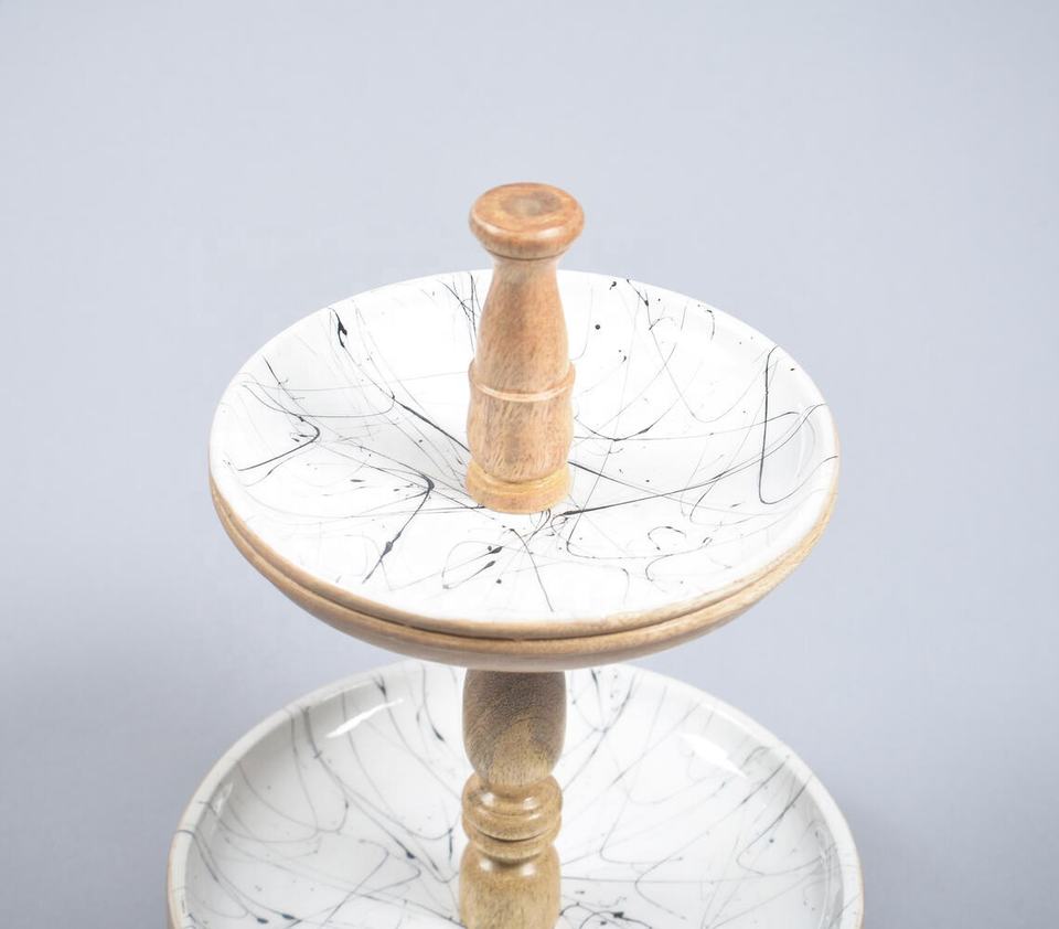 ที่ตั้งคัพเค้กไม้มะม่วง2-Tiered เคลือบและหันได้ตามต้องการ