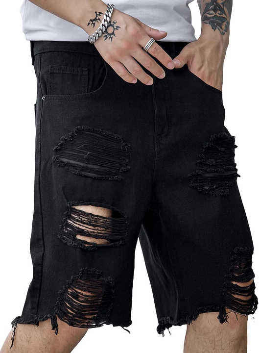 กางเกงขาสั้นผ้ายีนส์สำหรับผู้ชายขาสั้นผ้าฝ้ายฟอกสีแบบหลวมทนทานทันสมัยผ้าเดนิม100%