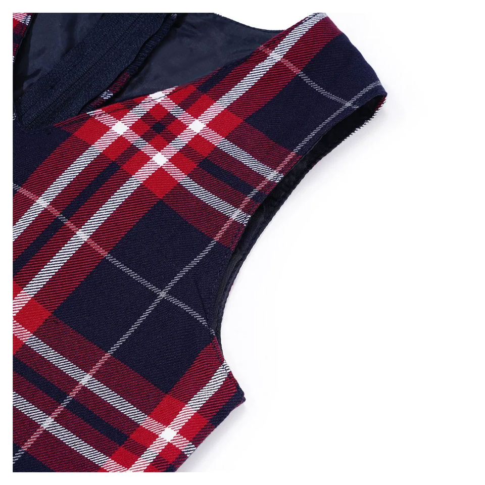 ผู้จัดจำหน่ายเสื้อผ้านักเรียนมัธยมปลายขายส่ง MOQ ต่ำ ชุดจั๊มเปอร์แขนกุดผ้าฝ้ายทวิลลายตารางจีบ ทนทาน