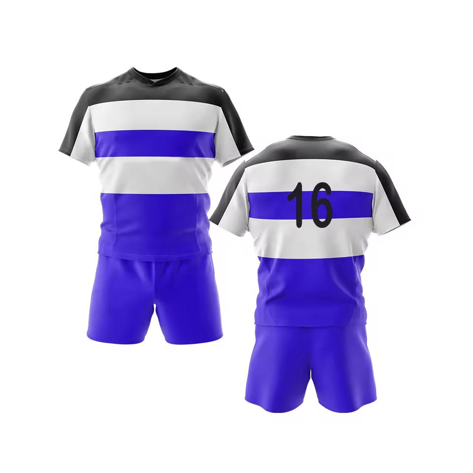 ชุดยูนิฟอร์มรักบี้ดีไซน์ล่าสุด MOQ ต่ำ ระบายอากาศได้ดี เป็นมิตรกับสิ่งแวดล้อม ผลิตจากโพลีเอสเตอร์ 100% สำหรับกีฬากลางแจ้ง มีสินค้าใหม่ในสต็อก บริการ OEM
