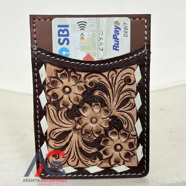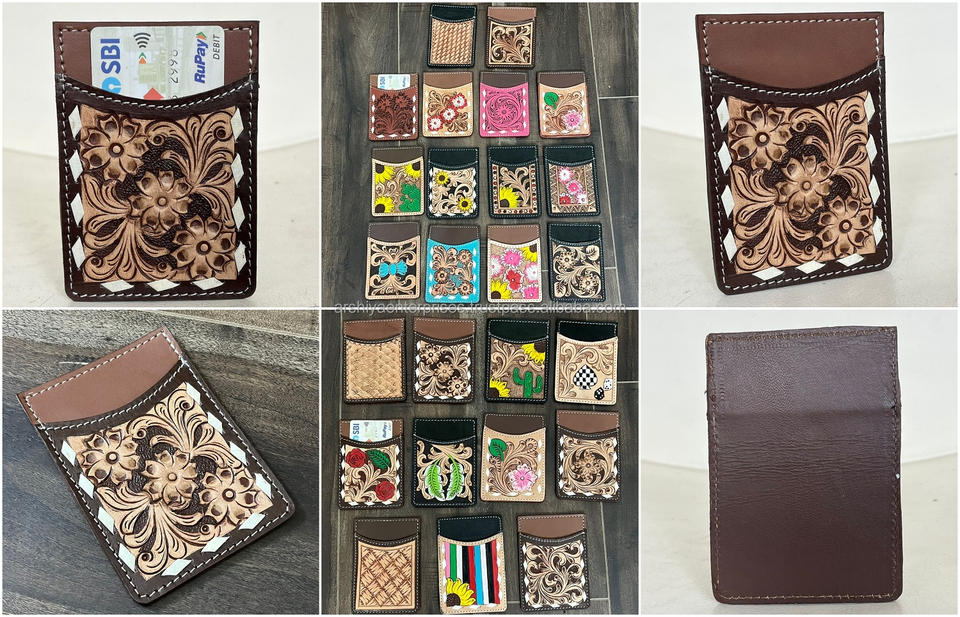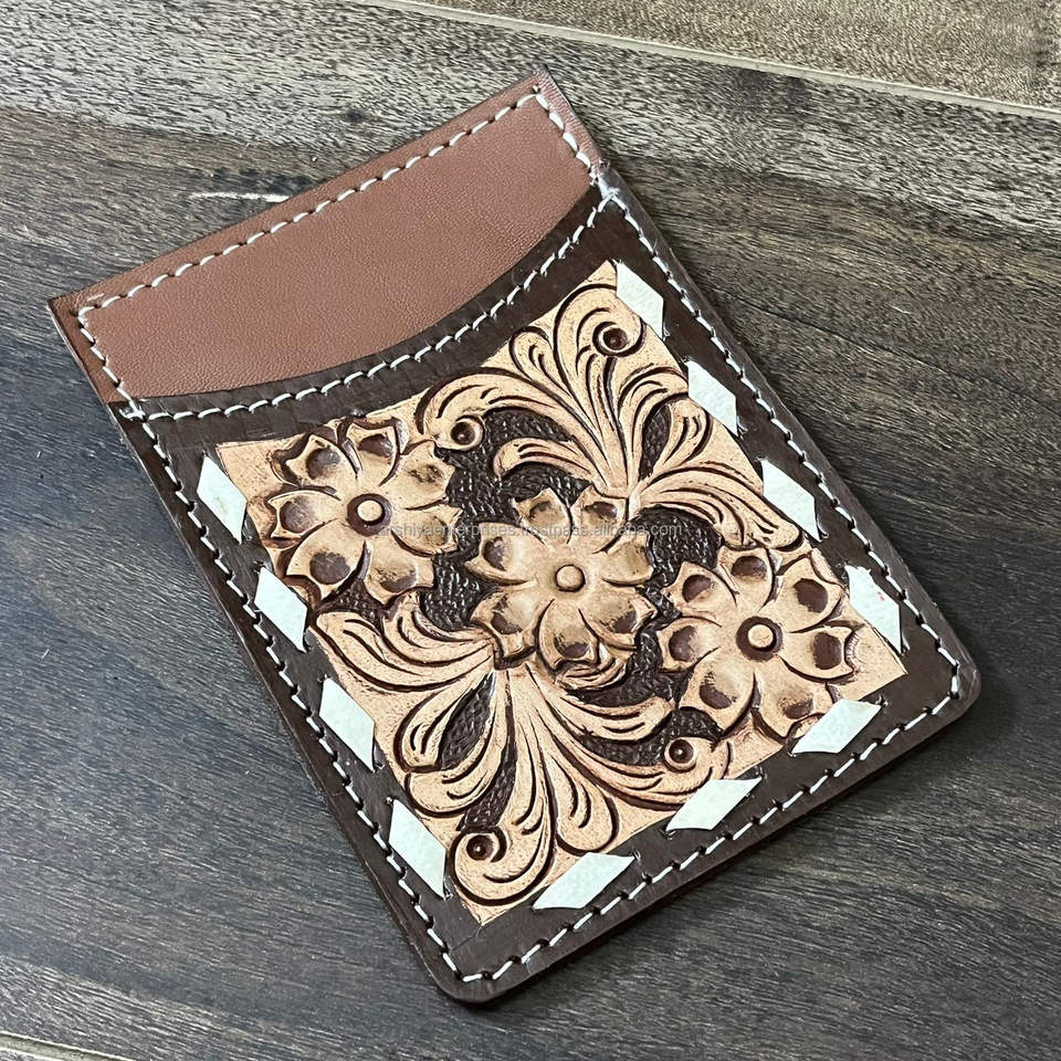 ที่ใส่บัตรเครดิตหนังวัวขนาดเล็กทำมือปรับแต่งลายดอกไม้หรูหรากระเป๋าสตางค์ RTS ที่ใส่บัตรเครดิต