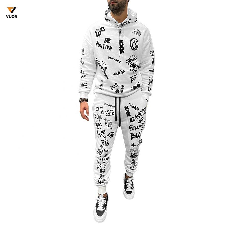 ชุดเซ็ตแทรคสูทผู้ชาย 2 ชิ้น คุณภาพสูง ผ้าฝ้าย 100% เสื้อฮู้ดดี้ทรงหลวมไหล่ตก กางเกงขายาวทรงตรง สั่งซื้อขั้นต่ำน้อย หรูหรา ทันสมัย