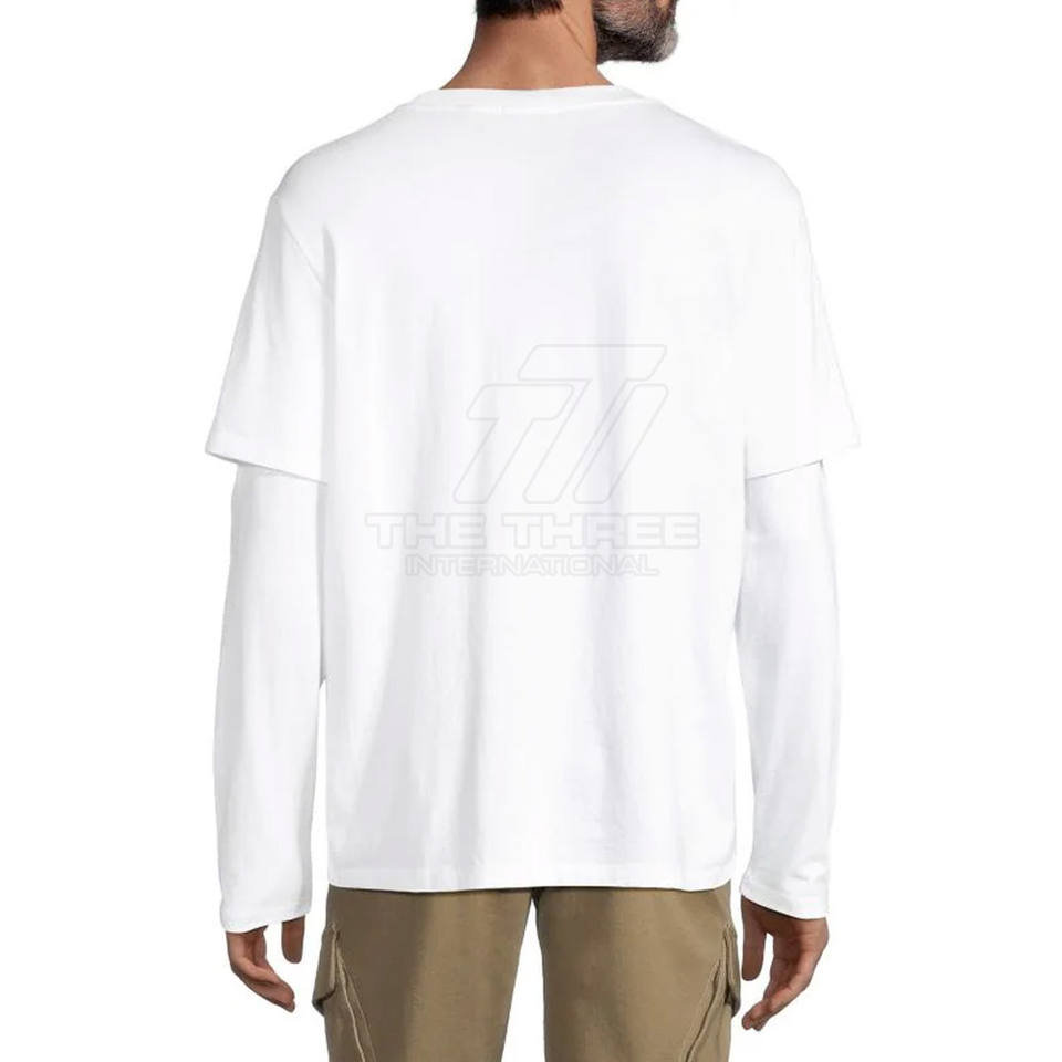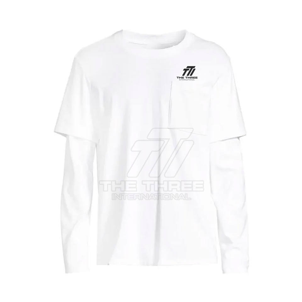 เสื้อยืดผู้ชายสองชั้น ผ้าฝ้าย 100% ระบายอากาศ แห้งเร็ว ใส่สบายสำหรับฤดูร้อน สั่งทำโลโก้ได้ แขนยาว MOQ ต่ำ