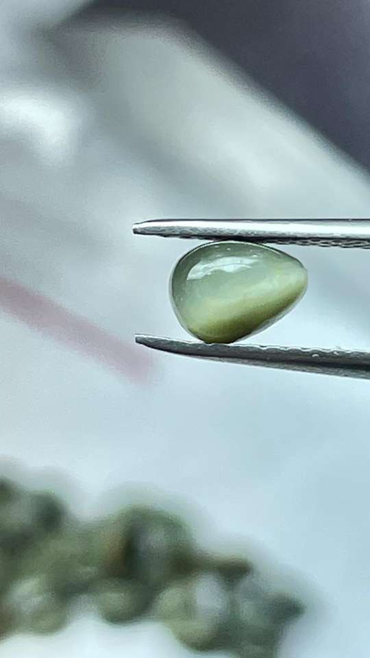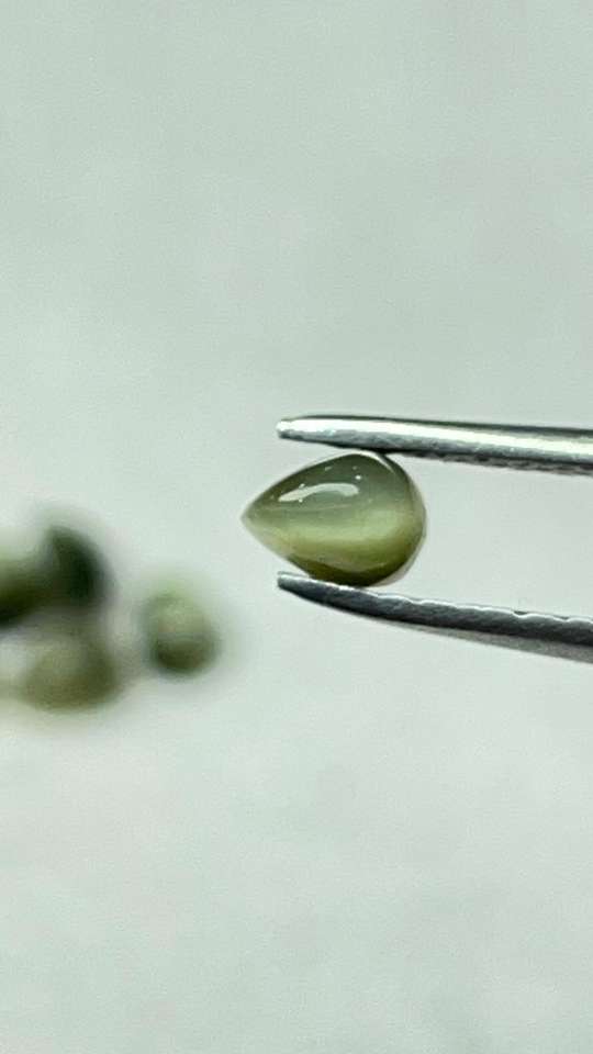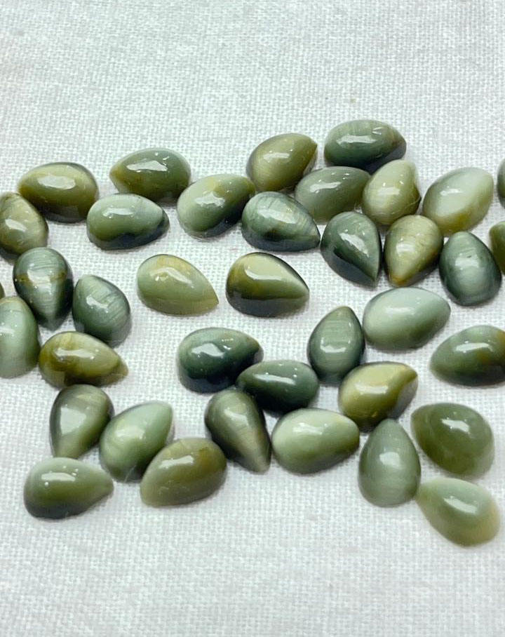 พลอยตาแมวธรรมชาติทรงลูกแพร์ 4x6 มม. แบบคาโบชอง คริโซเบอรีล เกรดเชิงพาณิชย์ สำหรับธุรกิจเครื่องประดับ ตาแมวอินเดีย MOQ ต่ำ