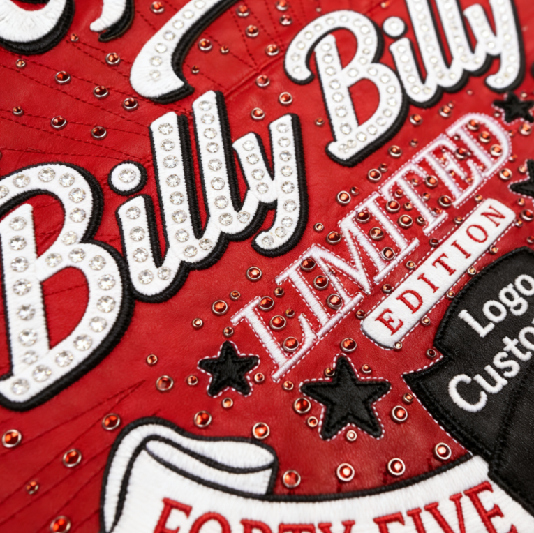 แจ็คเก็ตหนังแท้ปักลายเพชรหรูหราสำหรับผู้ชาย ผลิตตามสั่ง (OEM) ขั้นต่ำในการสั่งซื้อน้อย พร้อมปักโลโก้แบรนด์ตามต้องการ