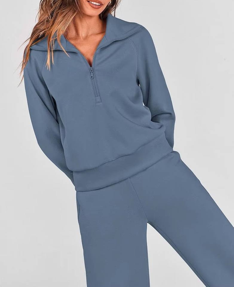 ชุดวอร์มสองชิ้นผ้าโพลีเอสเตอร์แขนยาวสำหรับผู้หญิงชุดวอร์มลำลองทรงแบ็กกี้ไซส์ใหญ่พิเศษ