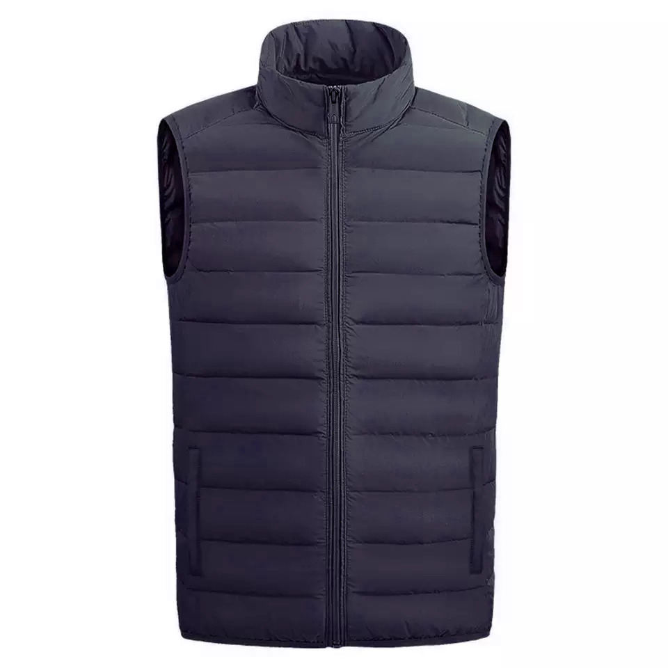 เสื้อกั๊กผู้ชายแบบพองแขนกุดมีปกตั้งเสื้อแจ็คเก็ตแขนกุดมีฟองโลโก้ออกแบบได้ตามต้องการสำหรับฤดูหนาว