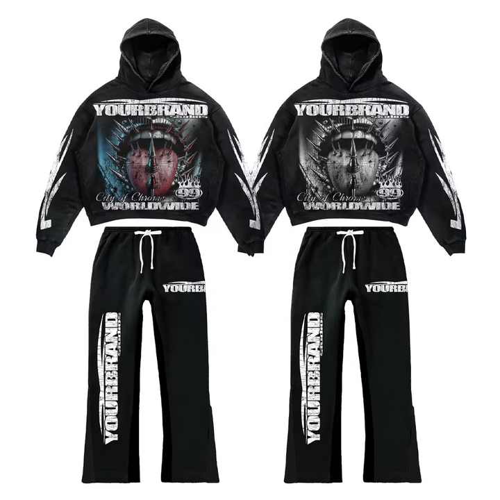 ผู้ผลิตเสื้อผ้าสตรีทแวร์สไตล์ฤดูใบไม้ร่วง รับผลิตตามสั่ง ปริมาณสั่งซื้อขั้นต่ำน้อย บริการตัดเย็บ จัดส่งรวดเร็ว เสื้อทรงโอเวอร์ไซส์ ไหล่ตก พิมพ์ลาย DTG