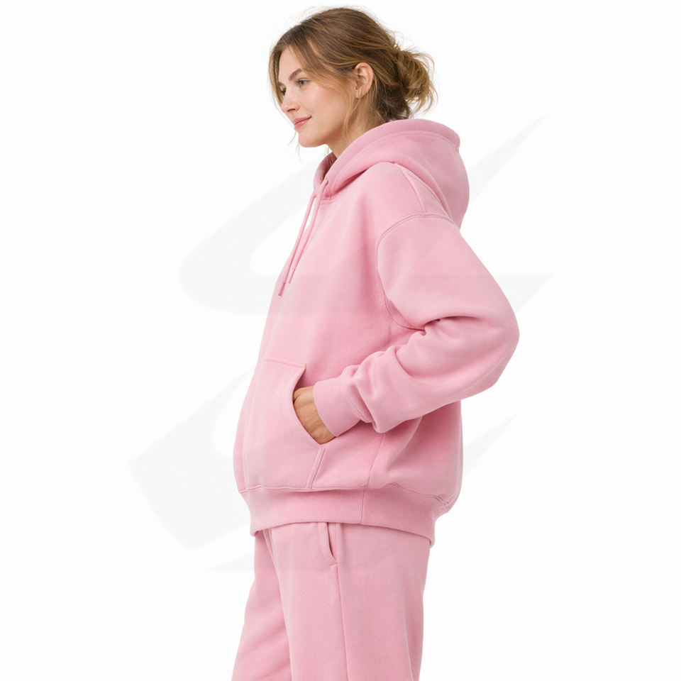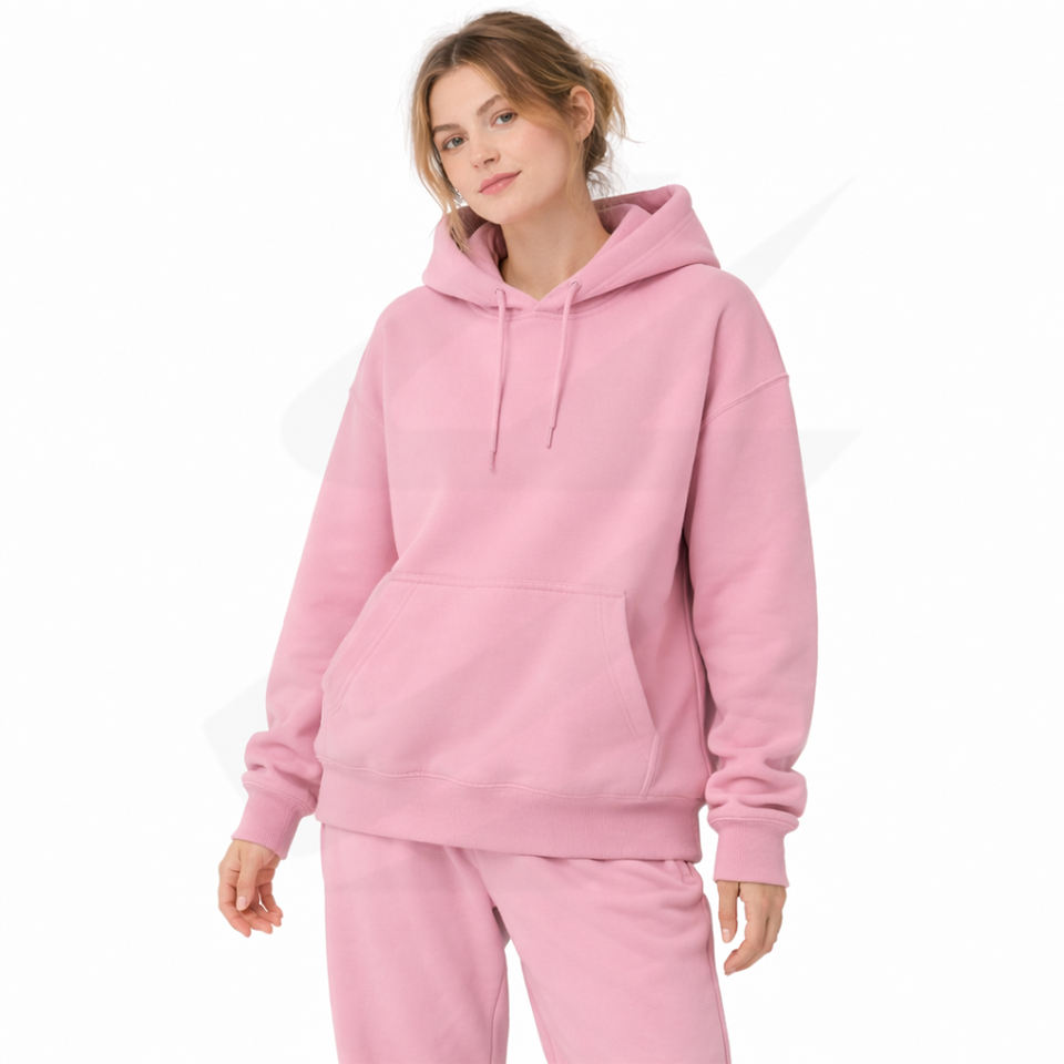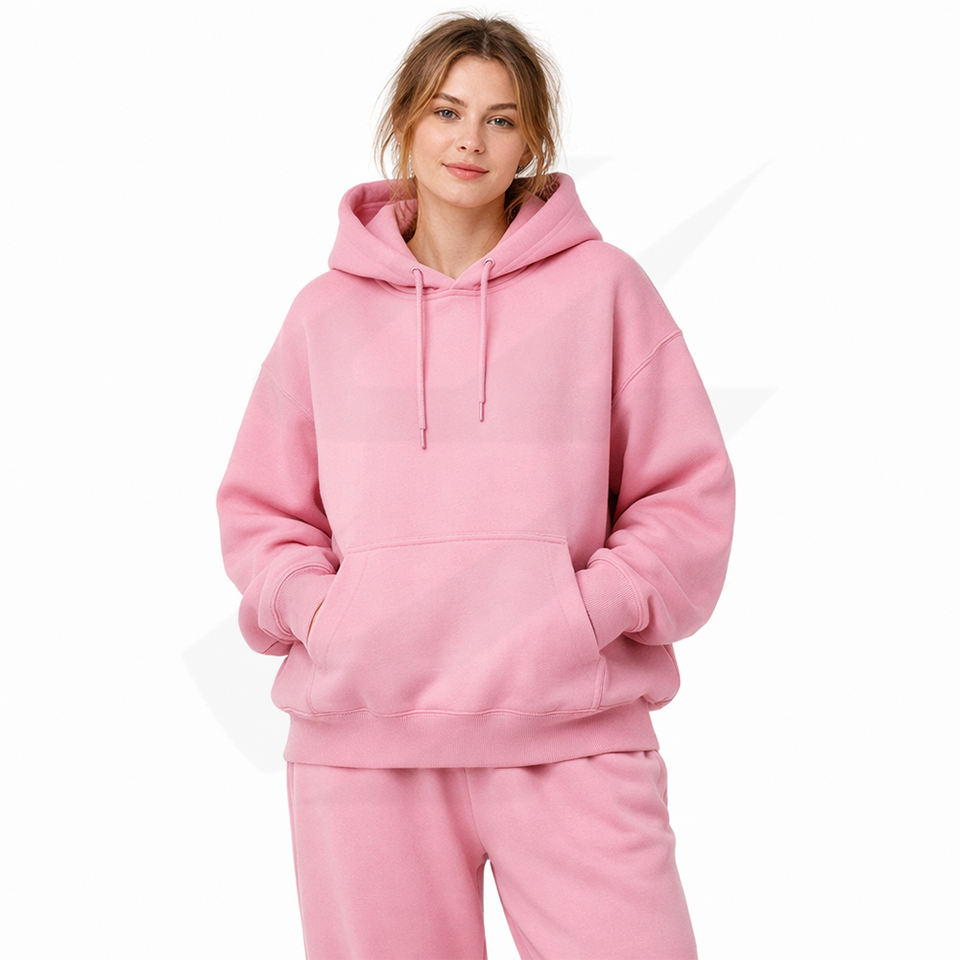 เสื้อฮู้ดดี้โอเวอร์ไซส์สำหรับผู้หญิง ผ้าฟลีซคอตตอนหนา 480gsm กระเป๋าจิงโจ้ แขนยาว อุ่นสบายสำหรับฤดูหนาว สไตล์ลำลอง ไซส์ใหญ่พิเศษ US EU MOQ ต่ำ