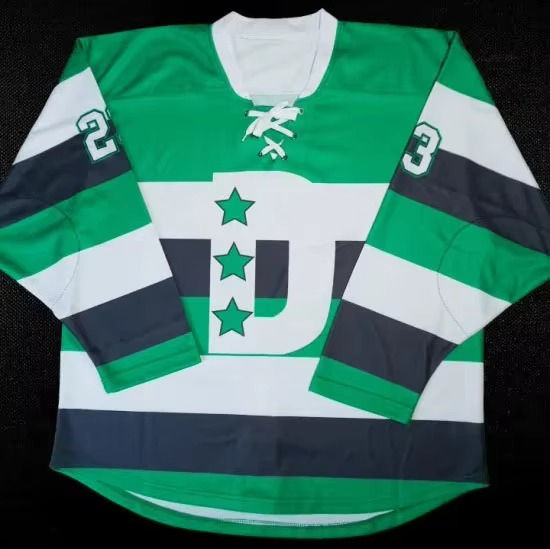 เสื้อฮอกกี้น้ำแข็งสไตล์วินเทจสั่งทำได้ ปริมาณสั่งซื้อขั้นต่ำน้อย ขายส่ง ระบายอากาศได้ดี ผลิตจากโพลีเอสเตอร์ 100% พิมพ์ลายแบบซับลิเมชั่นเต็มตัว สร้างสรรค์แบบของคุณเอง