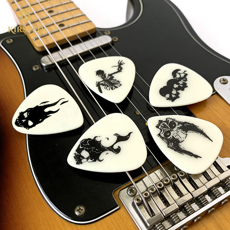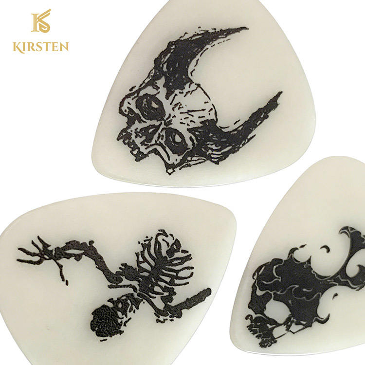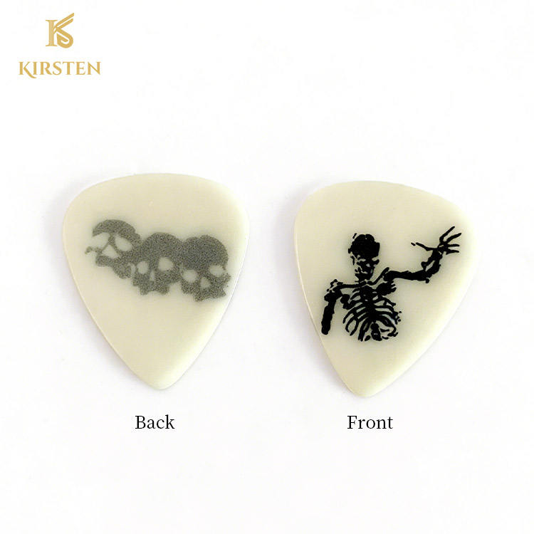 Low MOQ Wholesale Glow in the Dark Guitar Picks Custom Logo Fluorescent Celluloid Skull Design Acoustic Bass Guitars 5-Piece Set