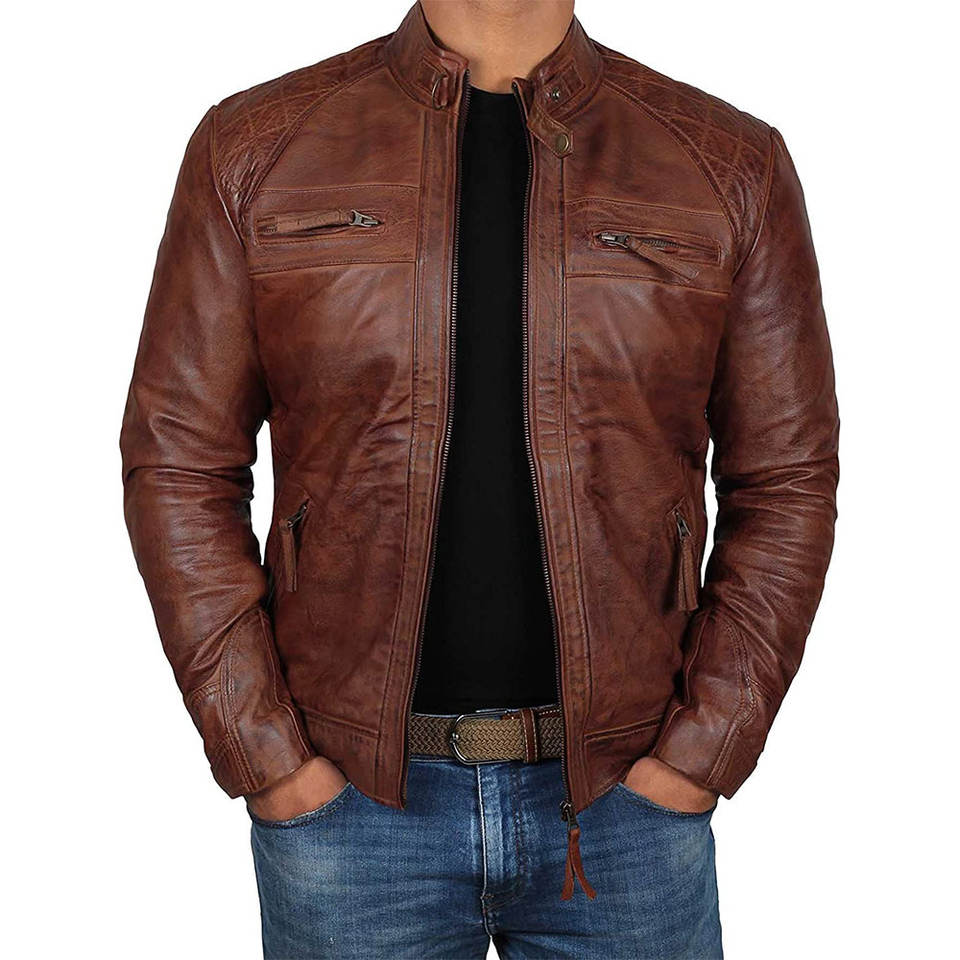 เสื้อแจ็คเก็ตหนังคุณภาพสูงสำหรับผู้ชาย